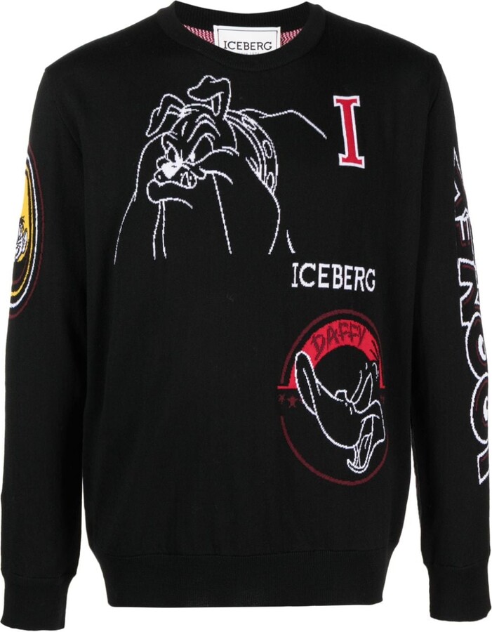 Iceberg Logo Intarsia Jumper Shopstyle Crewneck Sweaters
